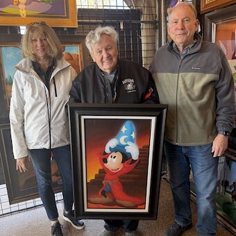 In the quiet presence of Disney Legend, Don ‘Ducky’ Williams holds The Sorcerer, we felt a spark of wonder—art and moment entwined, as if the painting itself had whispered its magic into our hearts.